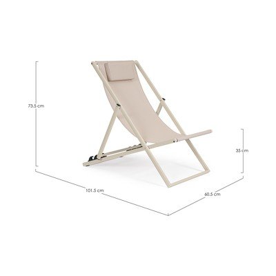 Șezlongul este fabricat dintr-un cadru metalic solid și o țesătură durabilă, ușor de întreținut. Pentru și mai mult confort, acesta are și o tetieră.