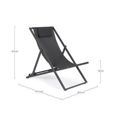 Șezlongul este fabricat dintr-un cadru metalic solid și o țesătură durabilă, ușor de întreținut. Pentru și mai mult confort, acesta are și o tetieră.