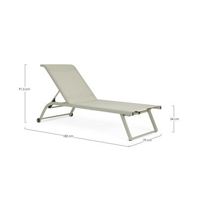 Șezlongul din metal Taylor de la Bizzotto în culoarea taupe este alegerea ideală pentru relaxare în grădină sau pe terasă. Șezlongul este echipat cu rotițe pentru o manevrare ușoară, iar spătarul său poate fi reglat în mai multe poziții.