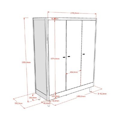 - din lemn de fag, finisaj suprafață: email, alb, lățime 146 cm, înălțime 190 cm, adâncime 55 cm