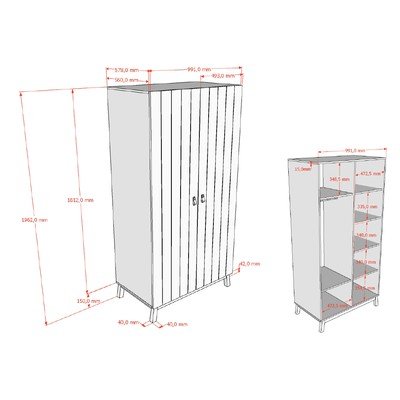 - din MDF, finisaj suprafață: email, bej, lățime 99 cm, înălțime 196 cm, adâncime 58 cm