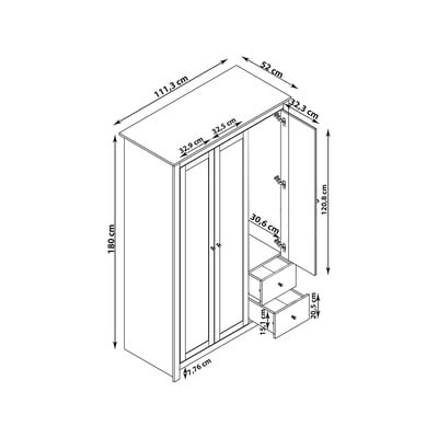 - cu aspect de lemn de stejar, din MDF, finisaj suprafață: folie, gri, lățime 112 cm, înălțime 180 cm, adâncime 52 cm