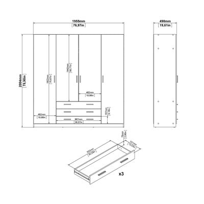 Șifonier Sprint- cu aspect de lemn de stejar, din PAL (placă aglomerată de lemn), finisaj suprafață: folie, în culoare naturală, lățime 196 cm, înălțime 200 cm, adâncime 50 cm