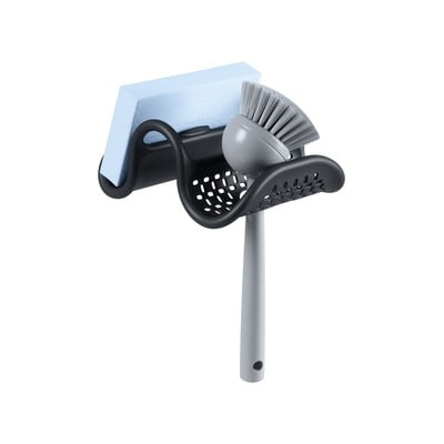 Sling este un organizator versatil pentru chiuvetă, care poate fi amplasat pe marginea sau pe peretele chiuvetei pentru a organiza ajutoarele de spălat vase departe de suprafața de lucru. Decupajele generoase și baza perforată permit scurgerea apei și previn acumularea de umiditate.