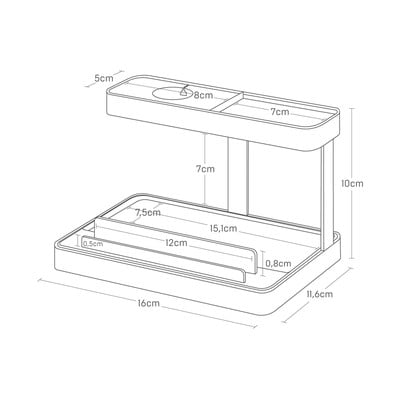 Suportul practic de la Yamazaki îți permite să depozitezi și să-ți încarci toate dispozitivele într-un singur loc. În partea de sus există o gaură pentru cablu și un tampon de silicon pentru ceasul tău inteligent. În partea de jos este un suport pentru telefon, tabletă și spațiu pentru alte accesorii.