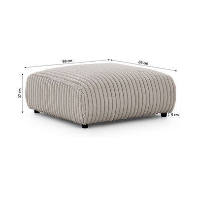 - cu tapițerie din catifea reiată , gri deschis, lățime 88 cm, adâncime 88 cm, înălțime 39 cm