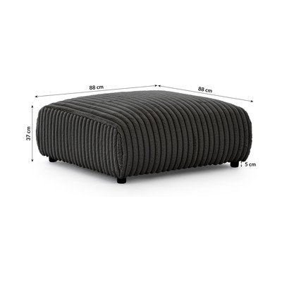 - cu tapițerie din catifea reiată , gri închis, lățime 88 cm, adâncime 88 cm, înălțime 39 cm