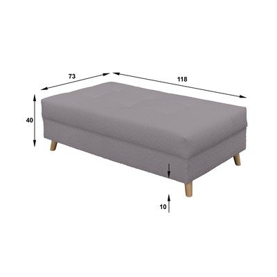 - cu tapițerie din țesătură bouclé, gri închis, lățime 118 cm, adâncime 73 cm, înălțime 40 cm
