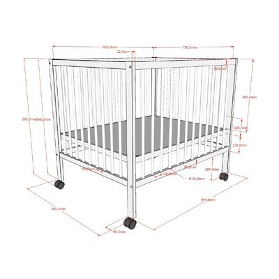 Țarc pentru copii alb din lemn de fag cu înălțime reglabilă/cu roți 95x75 cm Dino – Vipack