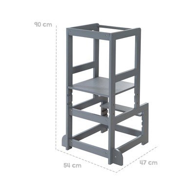 Roba Learning Tower este un scăunel stabil și sigur pentru copii, conceput în conformitate cu principiile pedagogiei Montessori. Acesta promovează independența și implicarea copilului în activitățile zilnice. Reglarea în trei etape a platformei (35 / 41,5 / 47,5 cm) și a treptelor (15 / 19 / 24 cm) permite adaptarea turnului la copilul în creștere. Treptele facilitează urcarea independentă, iar șinele din jurul platformei superioare protejează copilul de cădere. Turnul este potrivit pentru copiii de la 12 luni.