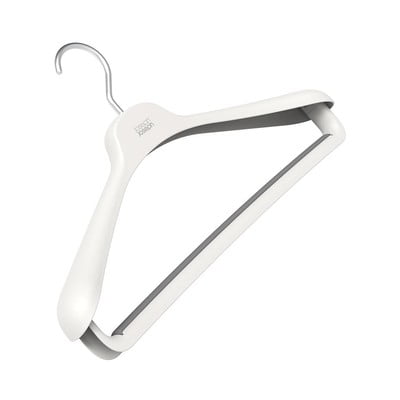 Setul de umerașe Orderly de la Joseph Joseph este un instrument excelent pentru organizarea garderobei. Acestea sunt proiectate cu suporturi late pentru umeri, ideale pentru costume, jachete și paltoane. Elementele elastice previn alunecarea pantalonilor în jos. Cârligele pivotante din aluminiu facilitează agățarea pe o tijă de dulap.