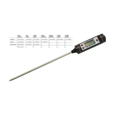 Setul include: spatulă, clește, furculiță cu două vârfuri, zdrobitor pentru cartofi, cuțit, perie de sârmă, perie de rezervă, 4 x țepușe pentru grătar, 8 x suporturi pentru porumb, cuțit și furculiță, solniță și piperniță, mănușă de cuptor, seringă pentru marinare și termometru digital cu sondă din oțel inoxidabil care măsoară de la -50 la 300°C. Totul este depozitat într-o geantă textilă la îndemână pentru transport și depozitare ușoară.