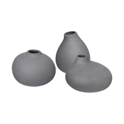 - 3 buc., din porțelan, gri-închis, înălțime 9 cm
