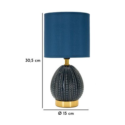 - cu abajur textil, din ceramică, cu alimentare la priză, albastră, înălțime 30,5 cm