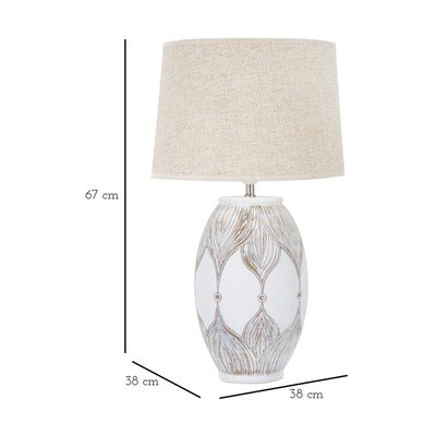 - cu abajur textil, din polirășină, cu alimentare la priză, albă/bej, înălțime 67 cm