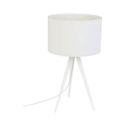 Veioză Tripod- cu abajur textil, din metal/din material textil, cu alimentare la priză, albă, înălțime 51 cm