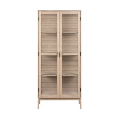 Vitrină Linley- cu aspect de lemn de stejar, din MDF, finisaj suprafață: furnir/finisaj suprafață: tratat cu ulei, în culoare naturală, lățime 80 cm, înălțime 180 cm, adâncime 40 cm
