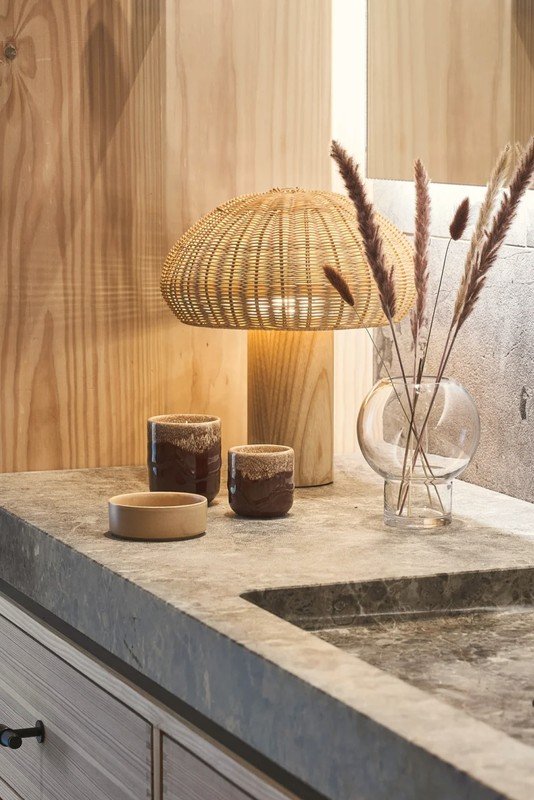 - LED, cu abajur din ratan, din ratan, cu USB, în culoare naturală, înălțime 32 cm