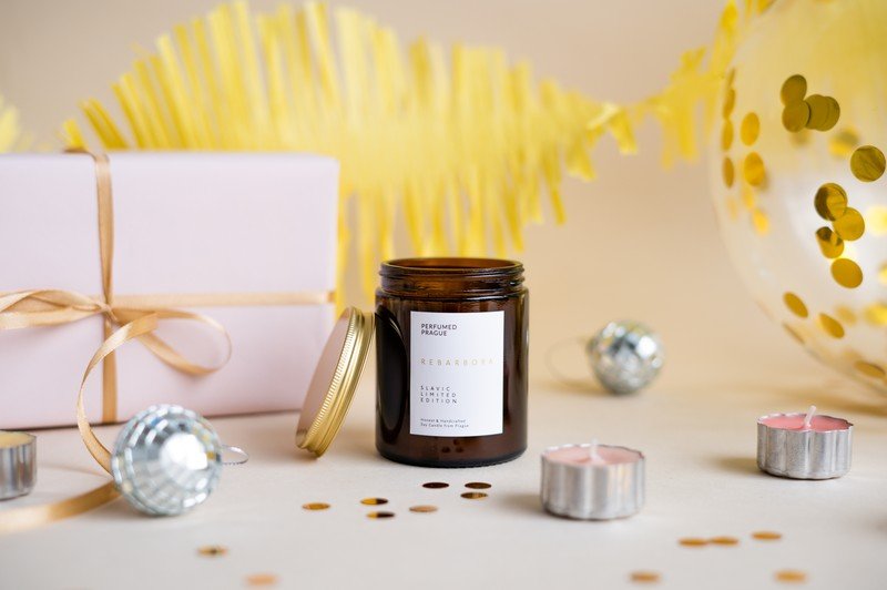 - parfumată, din ceară de soia, cu miros de prune/cu miros de măr/cu miros de rubarbă/cu miros de agriș, timp de ardere 40 h, numărul de fitiluri 1 buc., ø 6,5 cm, înălțime 8 cm
